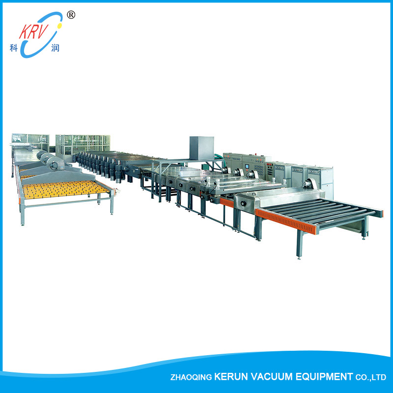 डबल-एंड स्ट्रक्चर, मल्टी-चेंबर आणि मल्टी-स्पटरिंग टार्गेट कॉन्फिगरेशनसह, ग्लास क्लीनिंग, कोटिंग, फ्लो पेंटिंग, ड्रायिंग आणि एअर-कूलिंग यासह सर्व प्रक्रिया एकाच वेळी उच्च कार्यक्षमतेसह आणि कमी श्रम खर्चासह पूर्ण केल्या जाऊ शकतात.